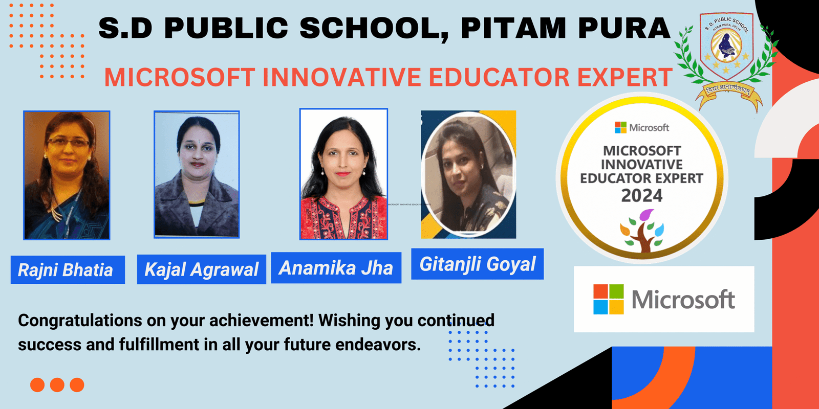 We congratulate our teachers on this outstanding achievement and celebrate this proud moment for the entire S. D. Public School community.