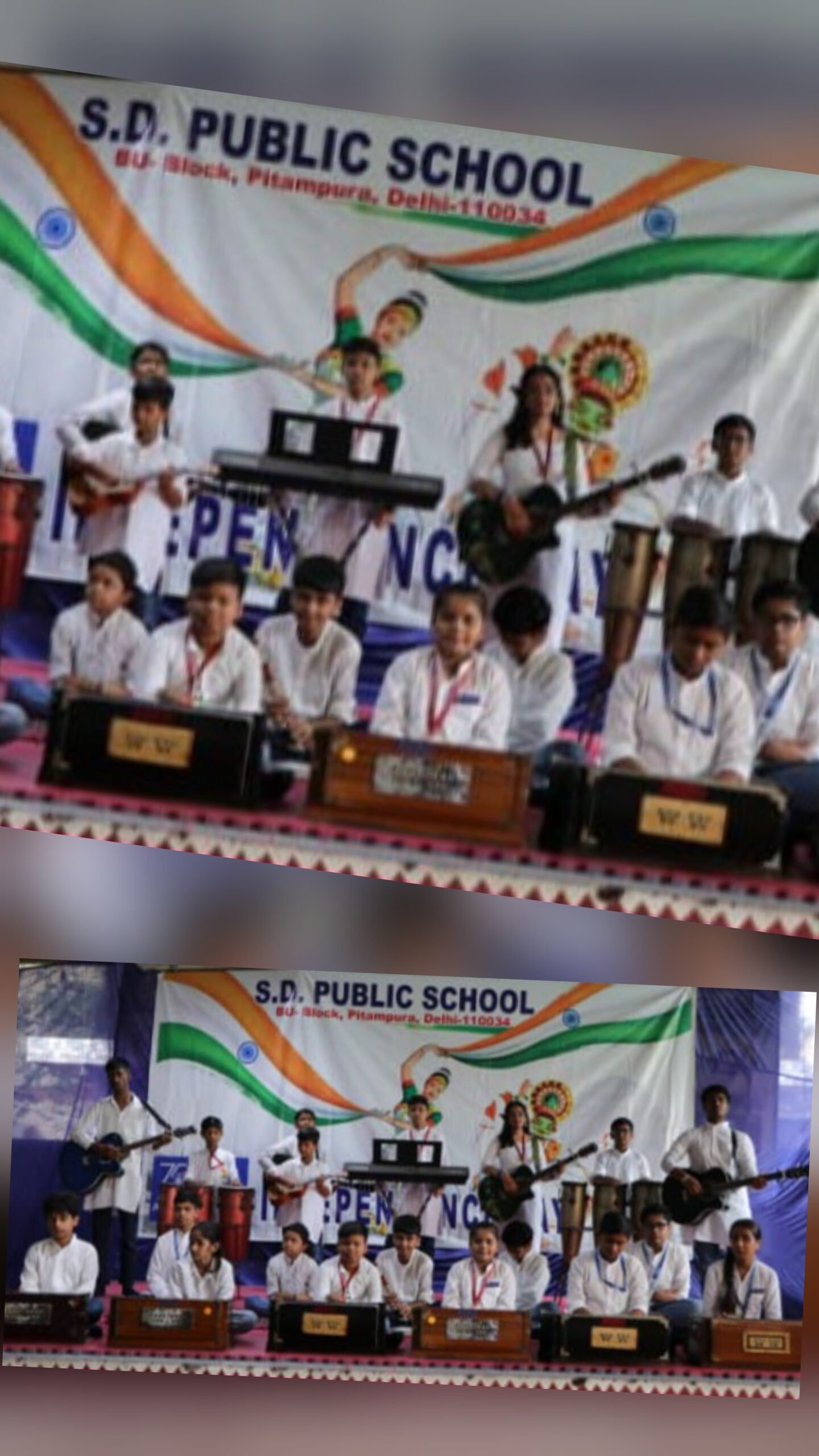 Budding artist of sdps performed at various platform Our school band team performed in various programmes outside school at National level. Tanvi of class 9B participated in zonal solo classical dance Students learning gujrati song in vocal music class Celebrations of Independence Day students performed patriotic song group dance and Orchestra